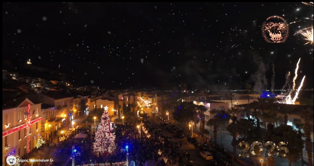 Λίγο πριν την αλλαγή του χρόνου, ο δήμαρχος Ναυπλιέων Δημήτρης Ορφανός ανέβηκε στη σκηνή μαζί με τους καλλιτέχνες, και αντιδημάρχους έκανε την αντίστροφη μέτρηση για τον ερχομό του 2026, μέσα σε χειροκροτήματα και ενθουσιασμό.