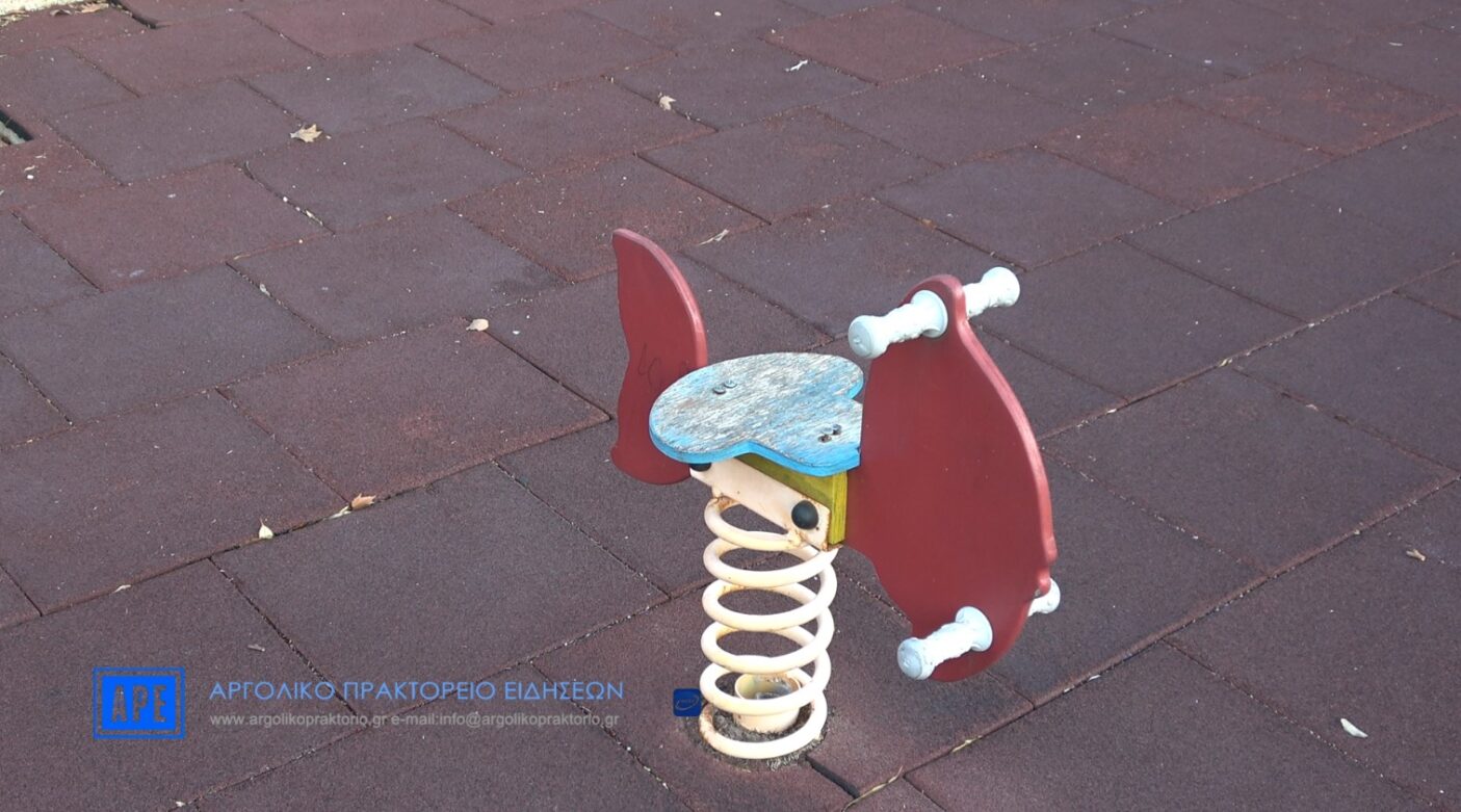 Η πρώτη καταγραφή αφορά μία από τις περίπου 30 παιδικές χαρές που λειτουργούν εντός του Δήμου Ναυπλιέων. Από τις φωτογραφίες που συνοδεύουν την έρευνα, μπορεί κανείς να αντιληφθεί τόσο το κόστος της κατασκευής όσο και τη σημερινή της κατάσταση.