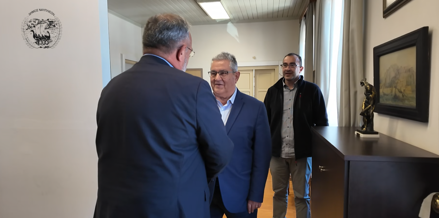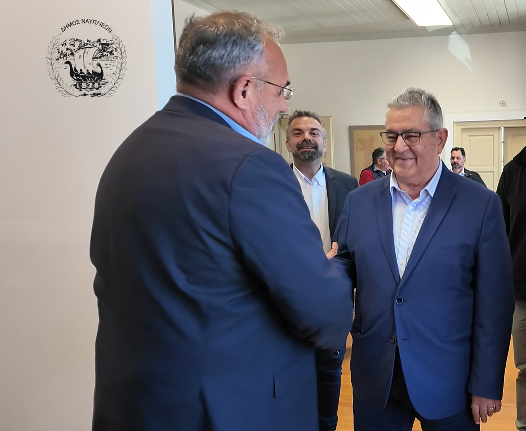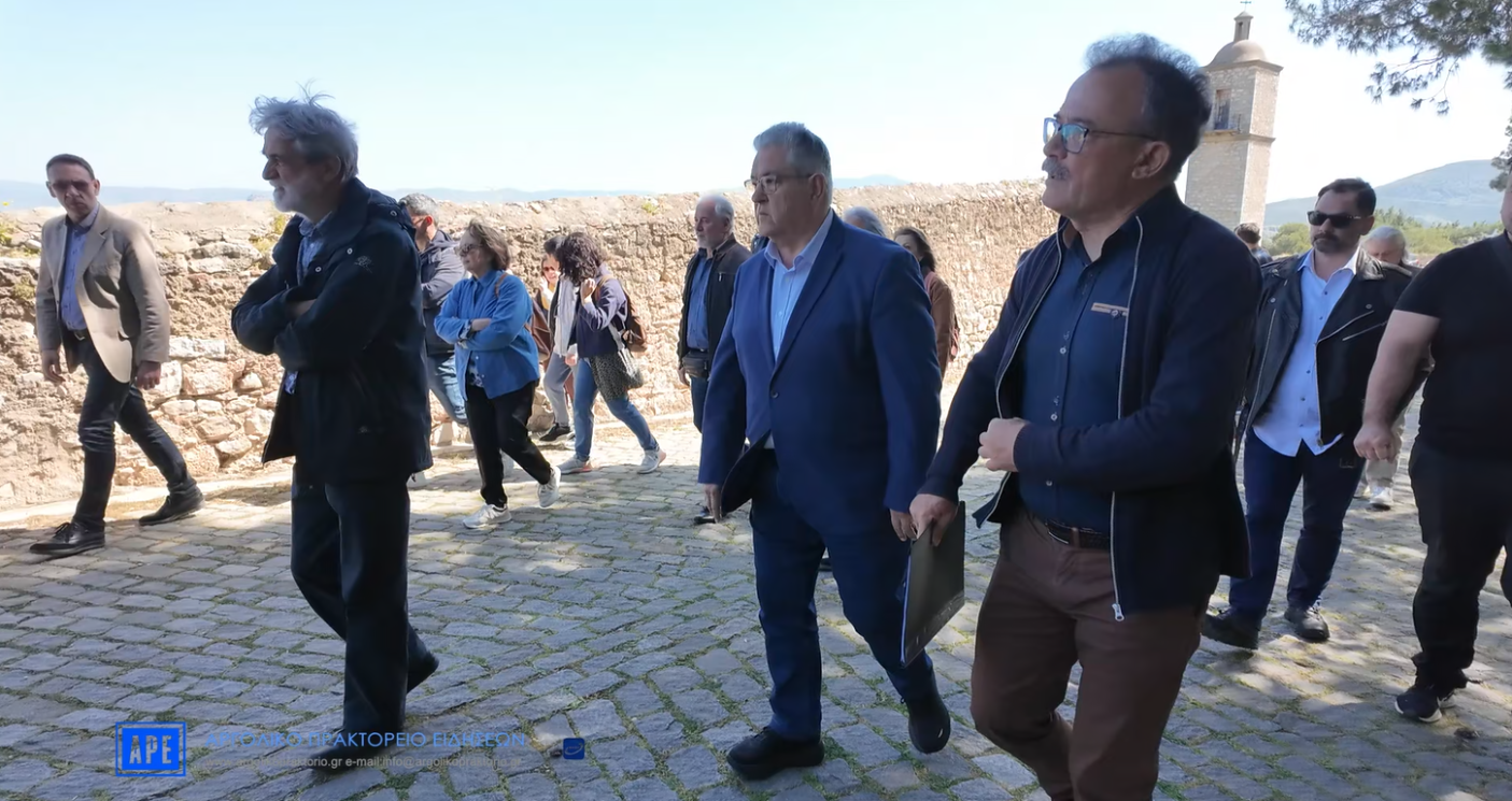 ΒΙΝΤΕΟ ΡΕΠΟΡΤΑΖ: Ο Δημήτρης Κουτσούμπας πραγματοποίησε επίσκεψη μνήμης και τιμής στην Ακροναυπλία το Σάββατο 18 Απριλίου 2026, συμμετέχοντας σε εκδηλώσεις αφιερωμένες στους Ακροναυπλιώτες κομμουνιστές. Η παρουσία του στο Ναύπλιο ξεκίνησε στις 11:00 το πρωί με ξενάγηση στον ιστορικό χώρο των παλιών φυλακών της Ακροναυπλίας. Στη συνέχεια, επισκέφθηκε τον δήμαρχο Ναυπλιέων Δημήτρης Ορφανός, όπου τον υποδέχθηκαν επίσης ο πρόεδρος του Δημοτικού Συμβουλίου Κωνσταντίνος Καραπαύλος και ο δημοτικός σύμβουλος Δημήτρης Διαλιάτσης. Οι εκδηλώσεις κορυφώνονται το απόγευμα, με τη μεγάλη συγκέντρωση που έχει προγραμματιστεί στην πλατεία Δημαρχείου της πόλης. www.argolidatv.gr www.dritsas.gr www.argolikopraktorio.gr