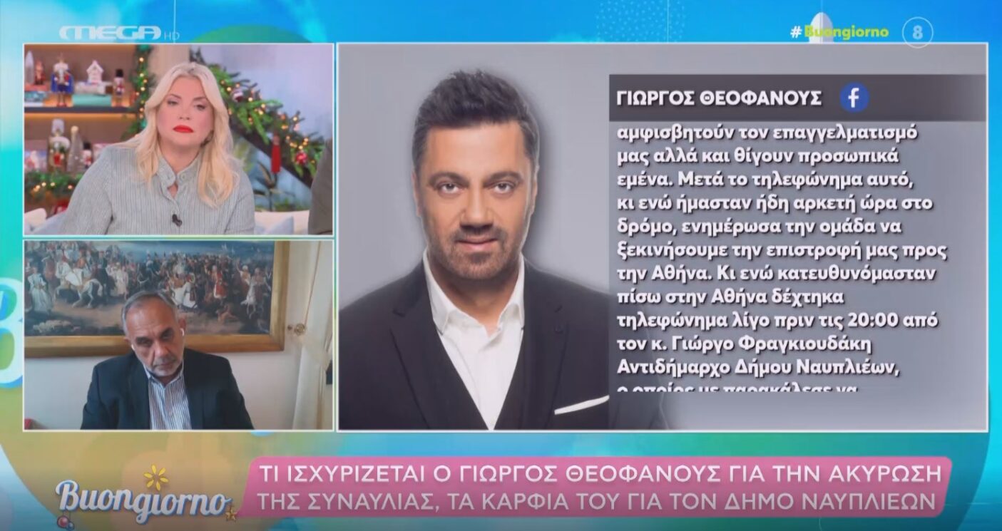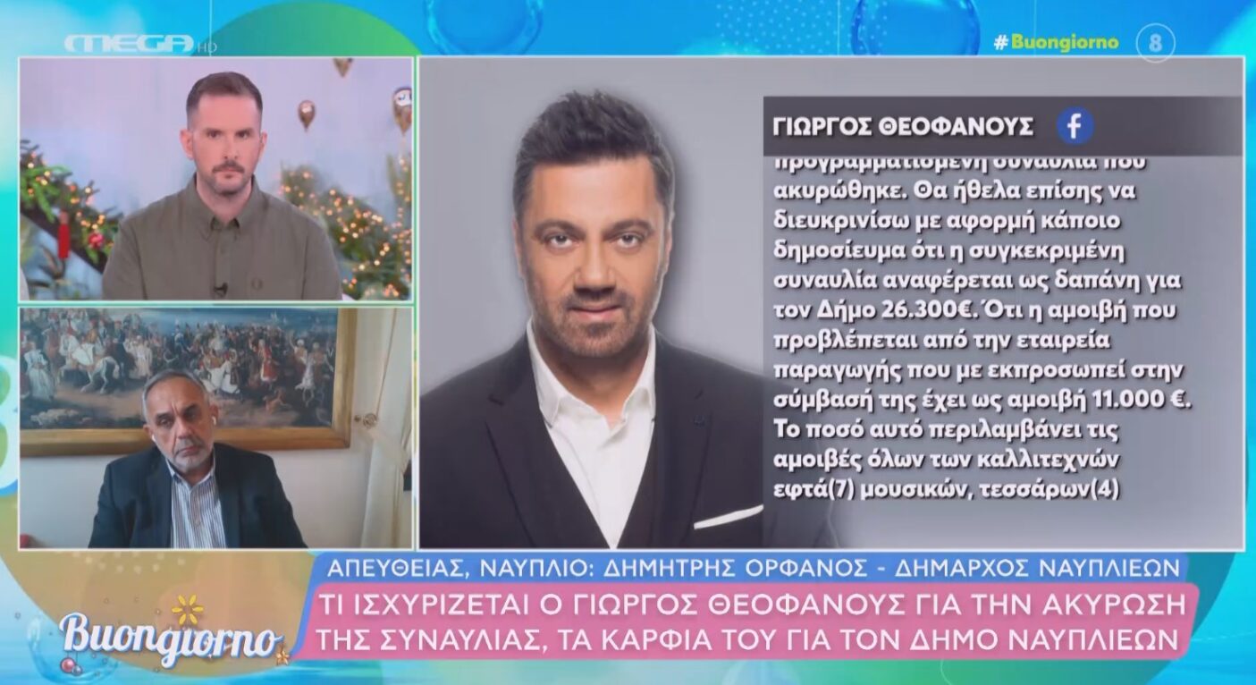 Ο Δήμαρχος Ναυπλιέων βάζει τα πράγματα στη θέση τους και δίνει όλες τις απαραίτητες διευκρινίσεις σχετικά με τη μη προσέλευση του καλλιτέχνη στο Ναύπλιο.