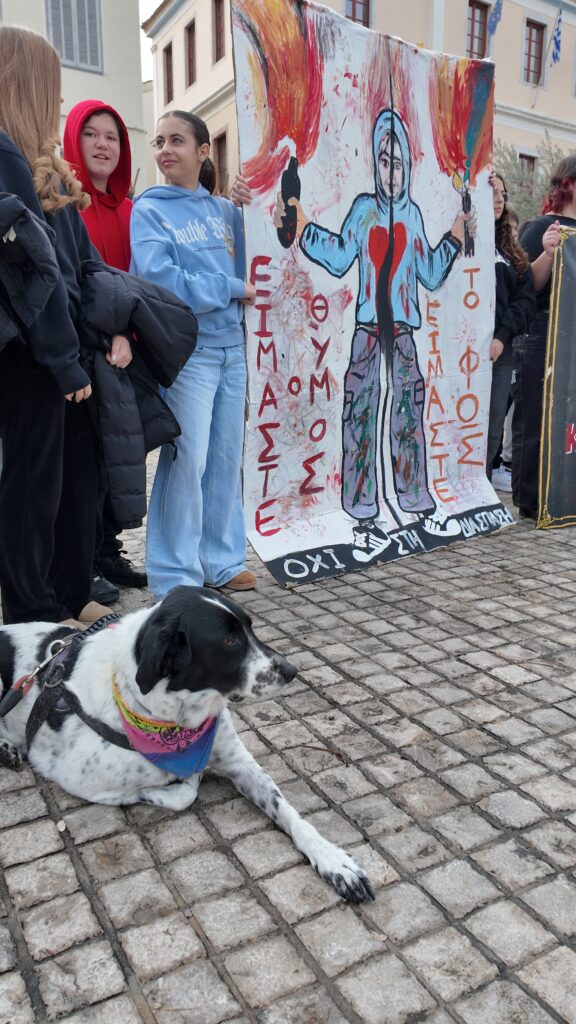 Στη συνέχεια, οι μαθητές πραγματοποίησαν πορεία με πανό και συνθήματα, η οποία κατέληξε στη Διεύθυνση Δευτεροβάθμιας Εκπαίδευσης Αργολίδας.
