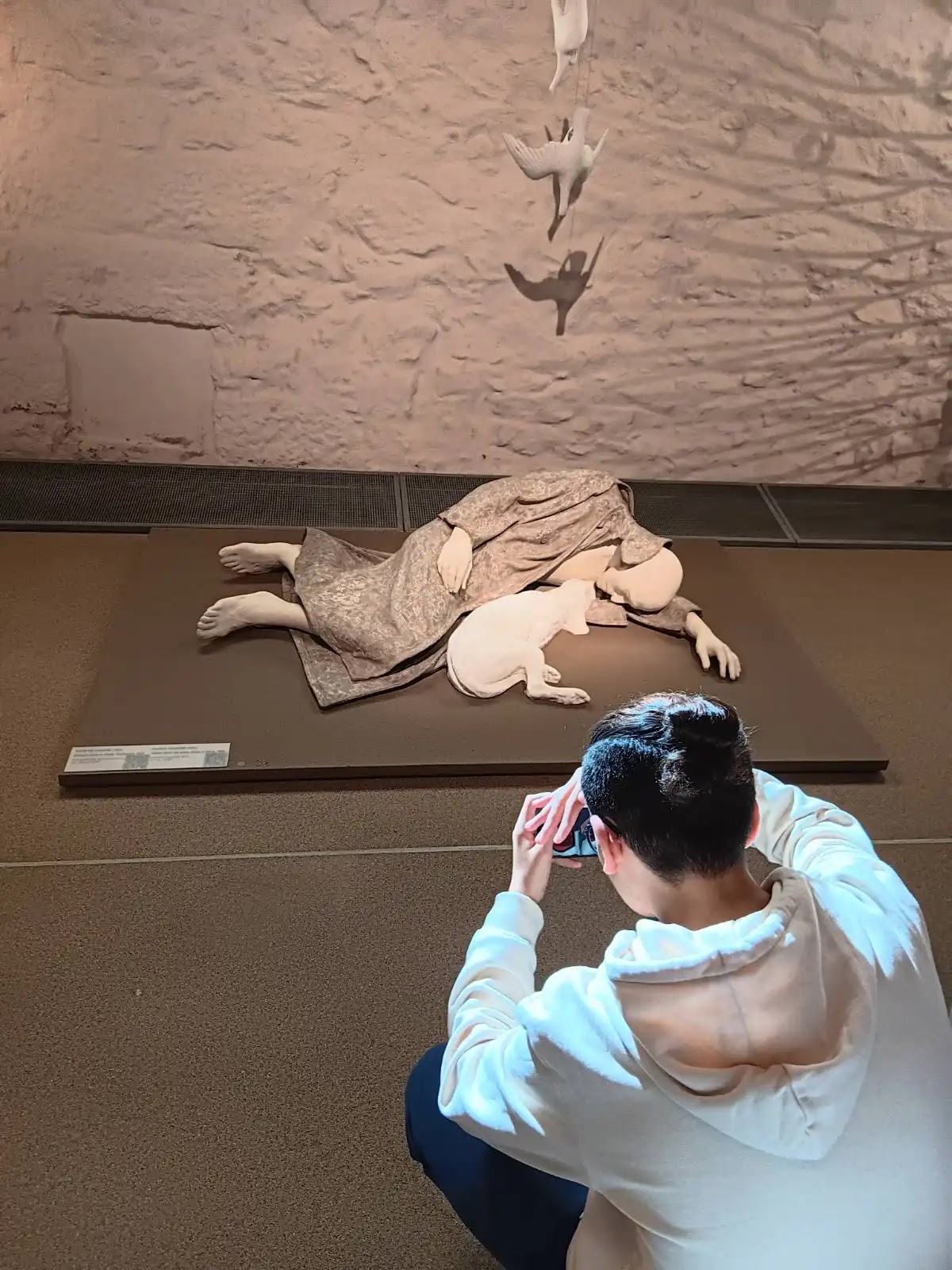 Ο επόμενος σταθμός μας ήταν στα έργα του Γιαννούλη Χαλεπά, ο οποίος αποτελεί μια εντελώς ιδιαίτερη περίπτωση στη νεοελληνική γλυπτική, αφού η τραγική του μοίρα σημάδεψε την καλλιτεχνική του πορεία. Όλοι μας θαυμάσαμε τα μοναδικής καλλιτεχνικής αξίας έργα της νεανικής του περιόδου, κατά την οποία επεξεργάστηκε θέματά εμπνευσμένα κυρίως από την αρχαιότητα και την ελληνική μυθολογία, όπως ο «Σάτυρος που παίζει με τον Έρωτα» (1877),το «Κεφάλι Σατύρου» (1878) και βέβαια το εξαίσιο σε σύλληψη και απόδοση αριστούργημά του, την «Κοιμωμένη», έργο στο οποίο οι μαθητές-τριες μας έμειναν αρκετά θέλοντας να μάθουν πολλές διασαφηνίστηκες λεπτομέρειες.