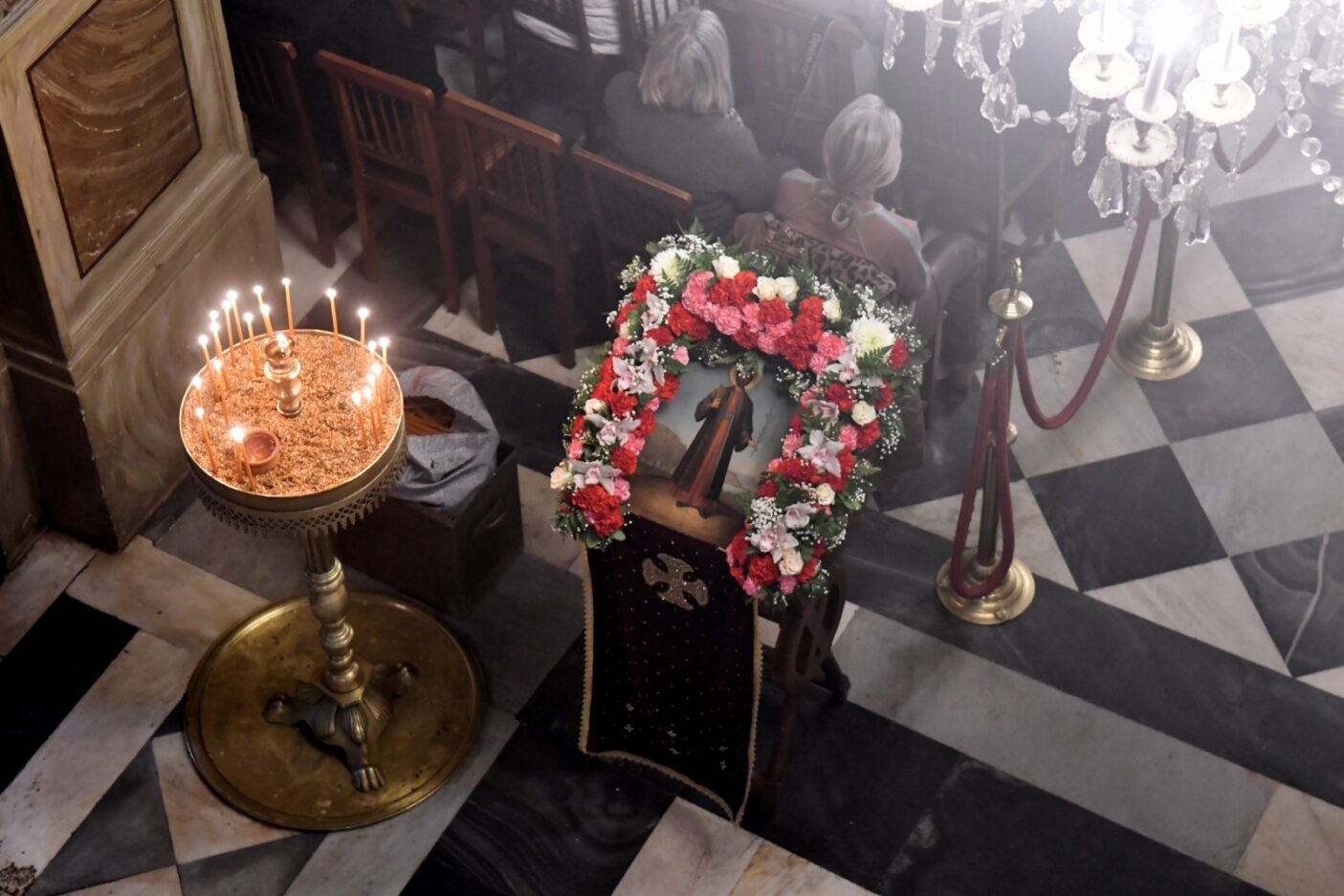 Κανείς δεν περίμενε αυτή την κοσμοσυρροή των Ναυπλιωτών, μια μέρα με πολύ άσχημες καιρικές συνθήκες – που πλημμύρησε κυριολεκτικά τον Ιστορικό Ιερό Ναό του Αγίου Γεωργίου Καρύκη στον οποίο φυλάσσεται η Αγία του Εικόνα από το 1950, καθώς και τη δεξίωση που ακολούθησε.
