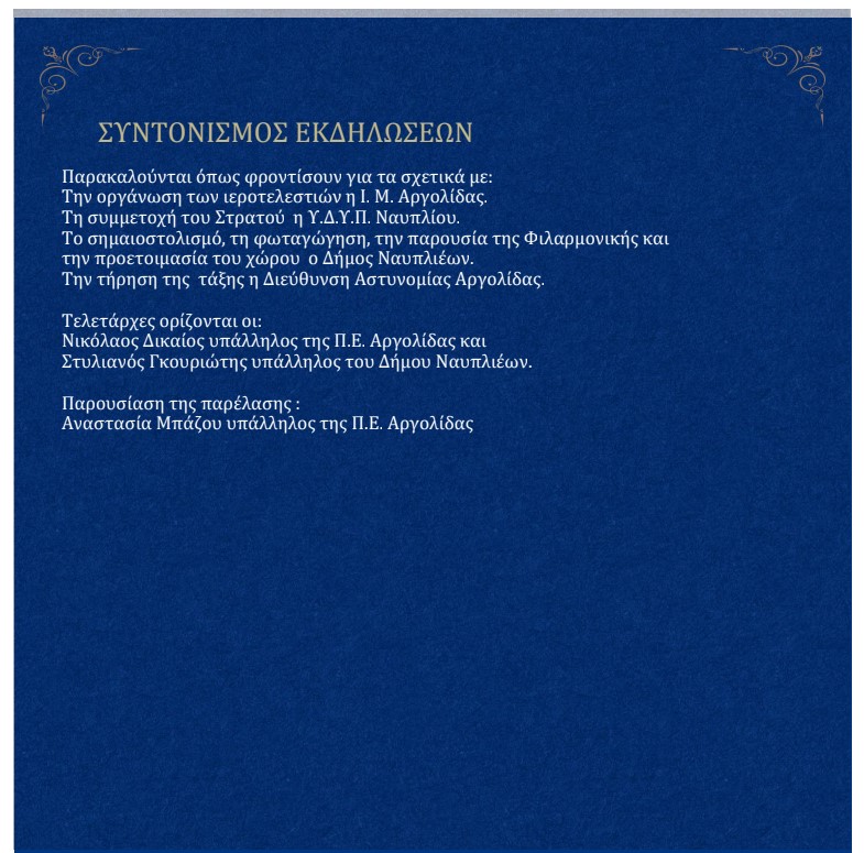εκπροσώπων σας που θα τιμήσουν τις εκδηλώσεις, συμβάλλοντας με αυτόν τον τρόπο στην λαμπρότητα