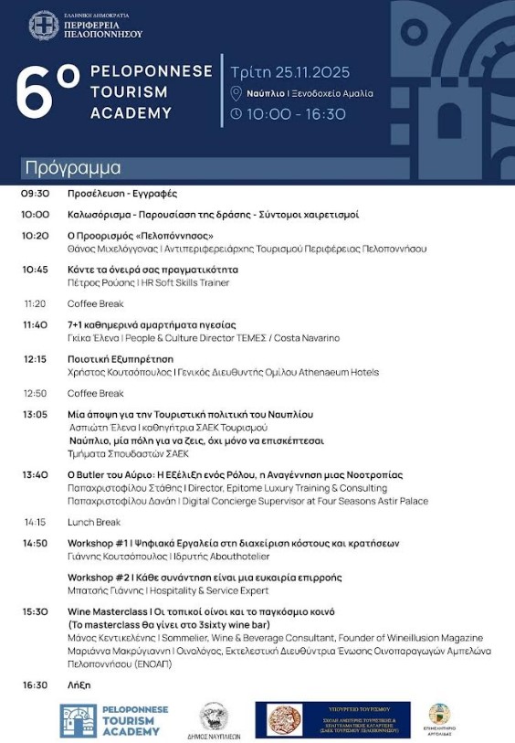 Το Peloponnese Tourism Academy, η πρωτοβουλία της Περιφέρειας Πελοποννήσου για την